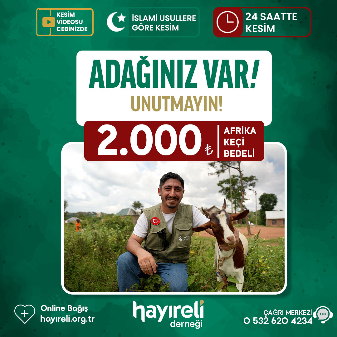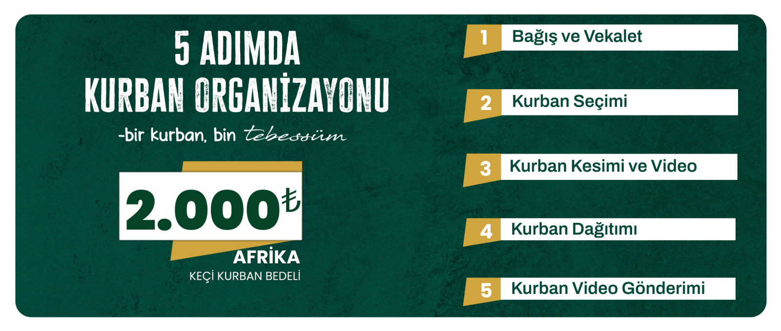 “Kurban Bereketi” sloganıyla yola çıkan Hayıreli Derneği, bu yıl da siz değerli bağışçılarının kurban emanetlerini Tanzanya'daki İhtiyaç sahiplerine ulaştırmaya devam ediyor. Gönül birliğiyle gerçekleştirdiğimiz kurban organizasyonları, yoksul coğraflarda umut oluyor ve bayram sevincini paylaşıyor.